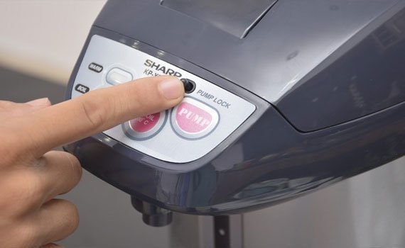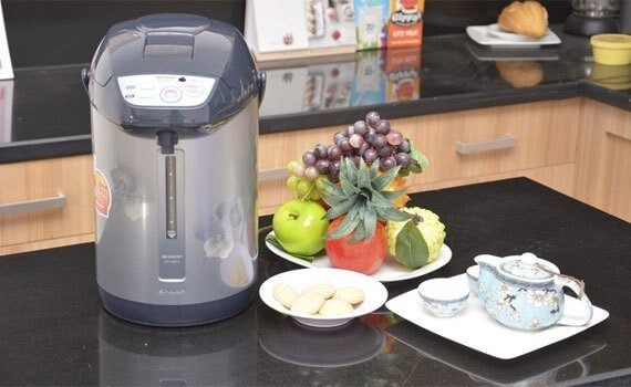 Bình thủy điện Sharp dung tích 3 lít, đun sôi nước nhanh, công suất 700W, tiết kiệm thời gian, dùng được nước nóng ngay.