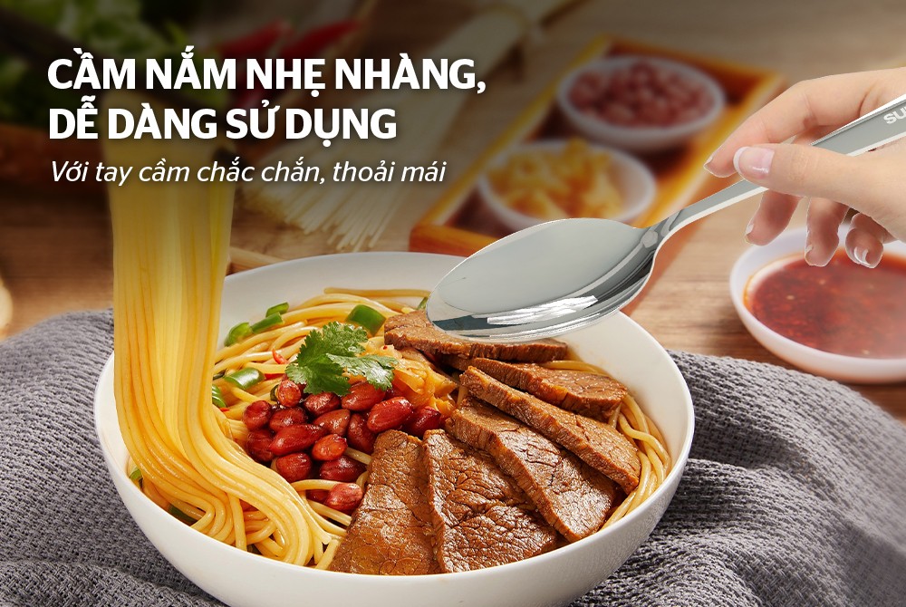 Tay cầm của chiếc muỗng này được thiết kế vừa vặn với tay người tiêu dùng, mang lại cảm giác thoải mái và chắc tay, giúp dễ dàng thao tác trong quá trình sử dụng.