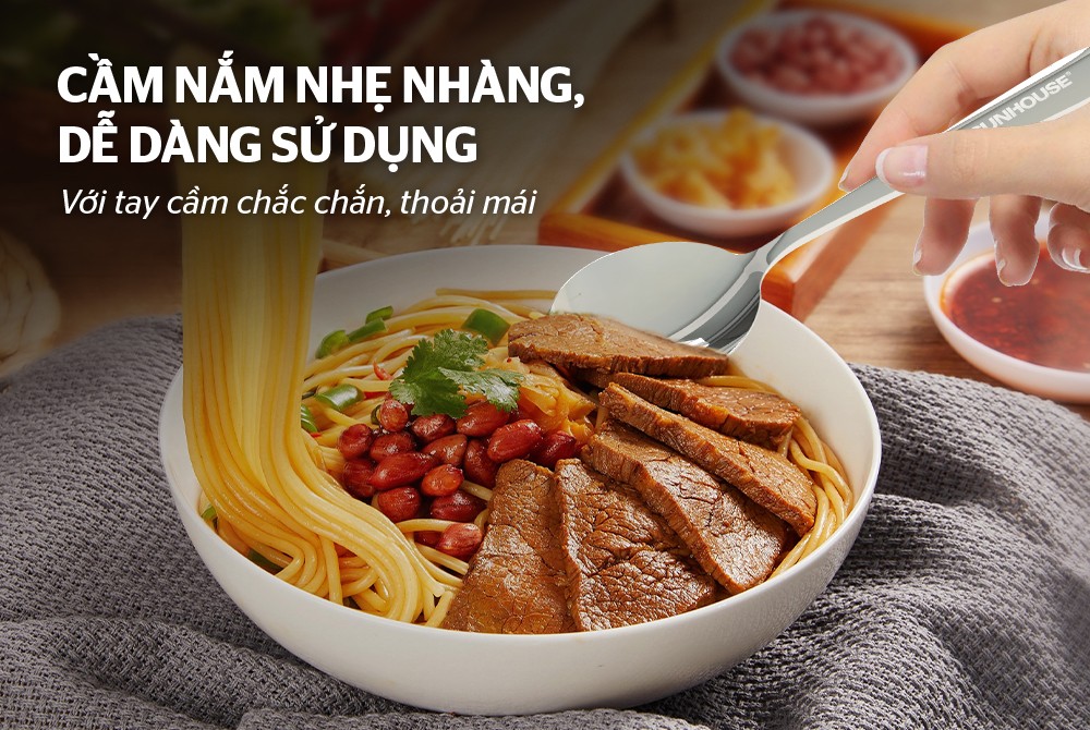 Tay cầm của chiếc muỗng này được thiết kế vừa vặn với tay người tiêu dùng, mang lại cảm giác thoải mái và chắc tay, giúp dễ dàng thao tác trong quá trình sử dụng.
