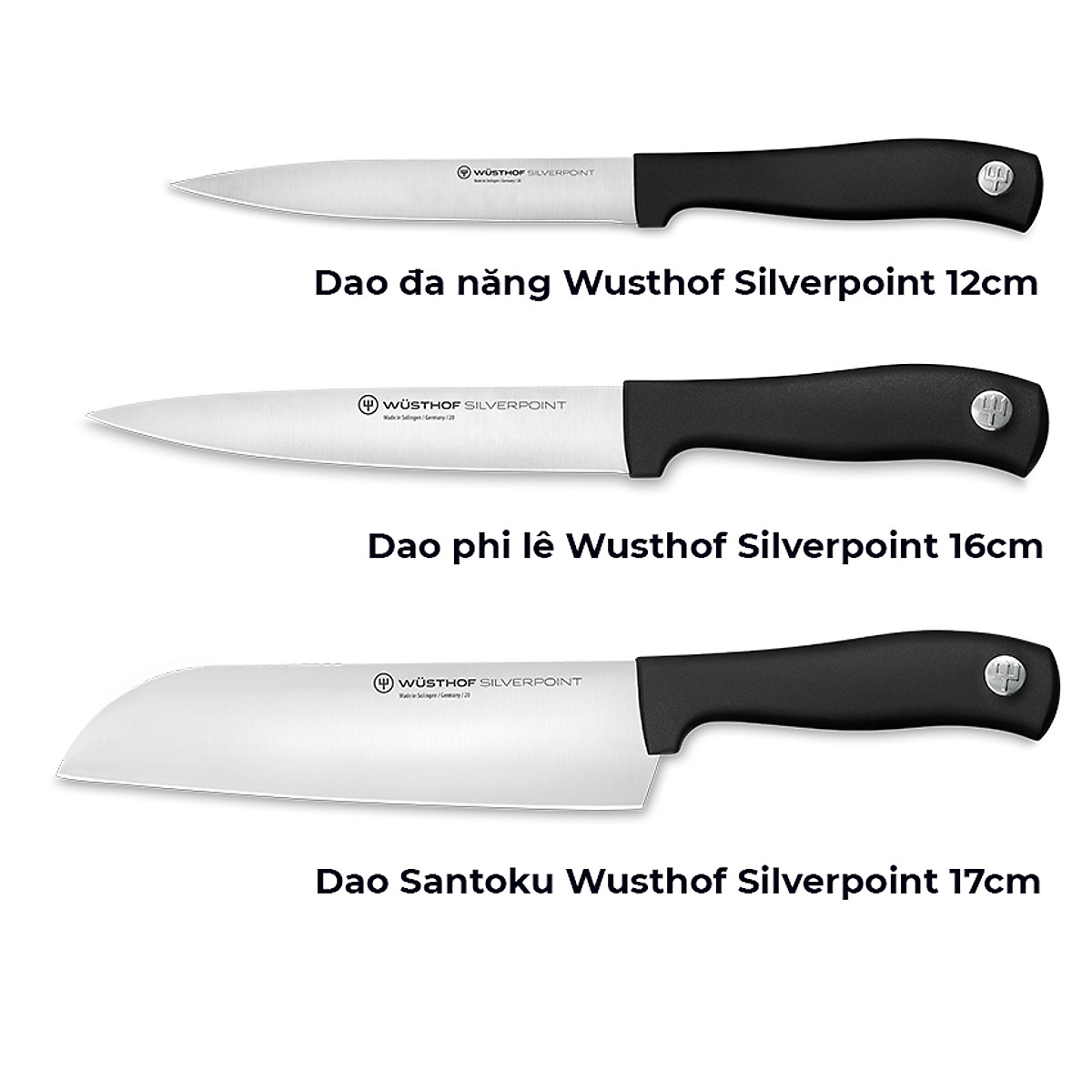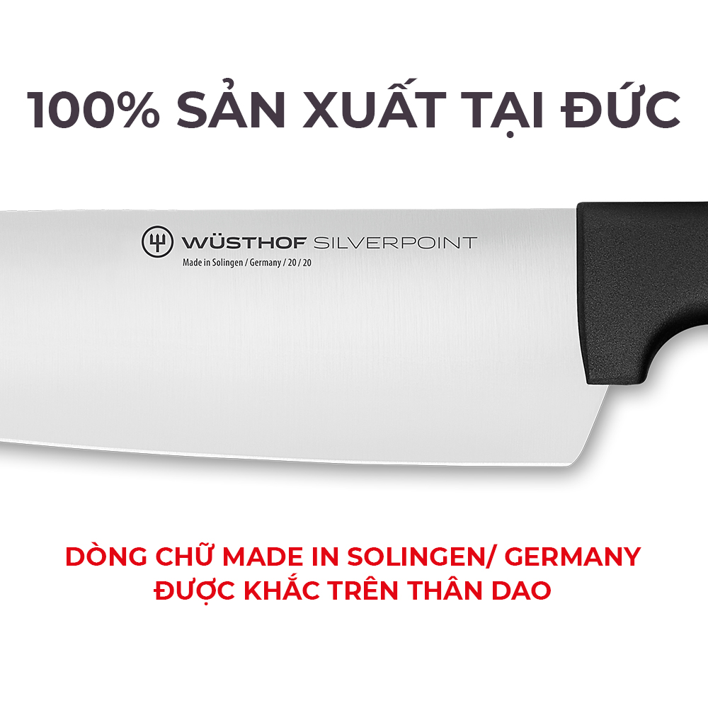 Sản xuất 100% tại Solingen, Đức. Bộ dao Silverpoint B được cắt từ một tấm thép không gỉ X50CrMoV15 duy nhất, mang lại độ bền vượt trội và sự sắc bén tối đa. Bộ dao gồm 3 sản phẩm: