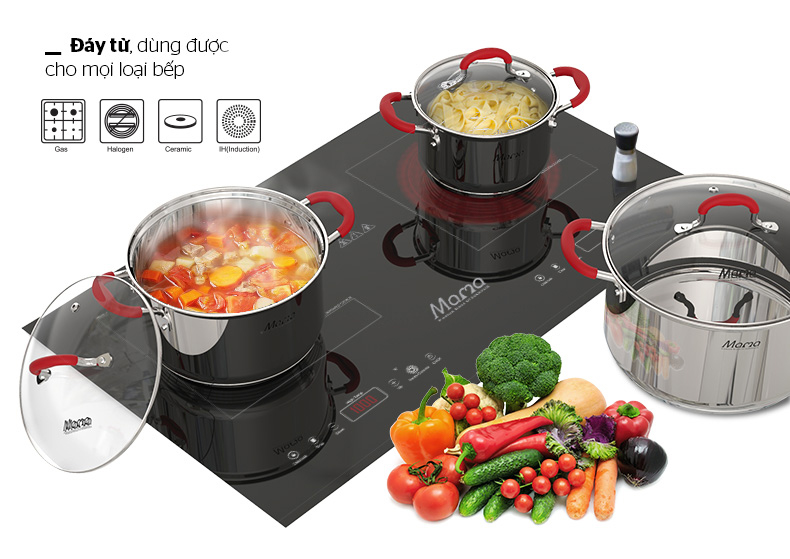 | Đáy nồi | Đáy từ, sử dụng trên mọi loại bếp |
