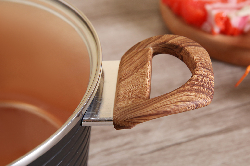 Tay cầm bằng nhựa phủ silicon cách nhiệt: Chất liệu nhựa silicon cách nhiệt, chống bỏng, đảm bảo an toàn trong quá trình đun nấu.