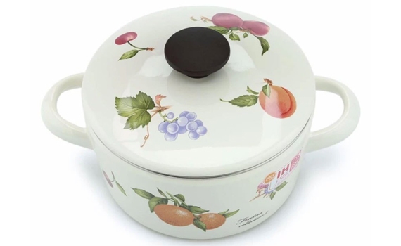 Bộ nồi tráng men hoa văn trái cây sử dụng bếp từ Fujihoro FRV-3 sở hữu thiết kế tinh tế với màu sắc và họa tiết đẹp mắt, góp phần mang đến phong cách sang trọng, hiện đại cho không gian bếp, bàn ăn nhà Bạn. Nắp đậy kín giúp tăng khả năng giữ nhiệt và ngăn ngừa bụi bẩn, vi khuẩn xâm nhập hiệu quả. Tay cầm hai bên và núm nắp chắc chắn, cách nhiệt, giúp bạn dễ dàng thực hiện các thao tác nấu và di chuyển nồi khi cần thiết.