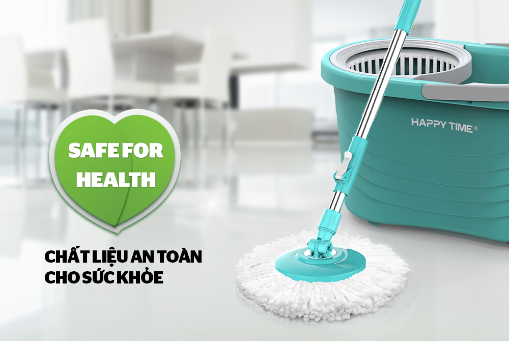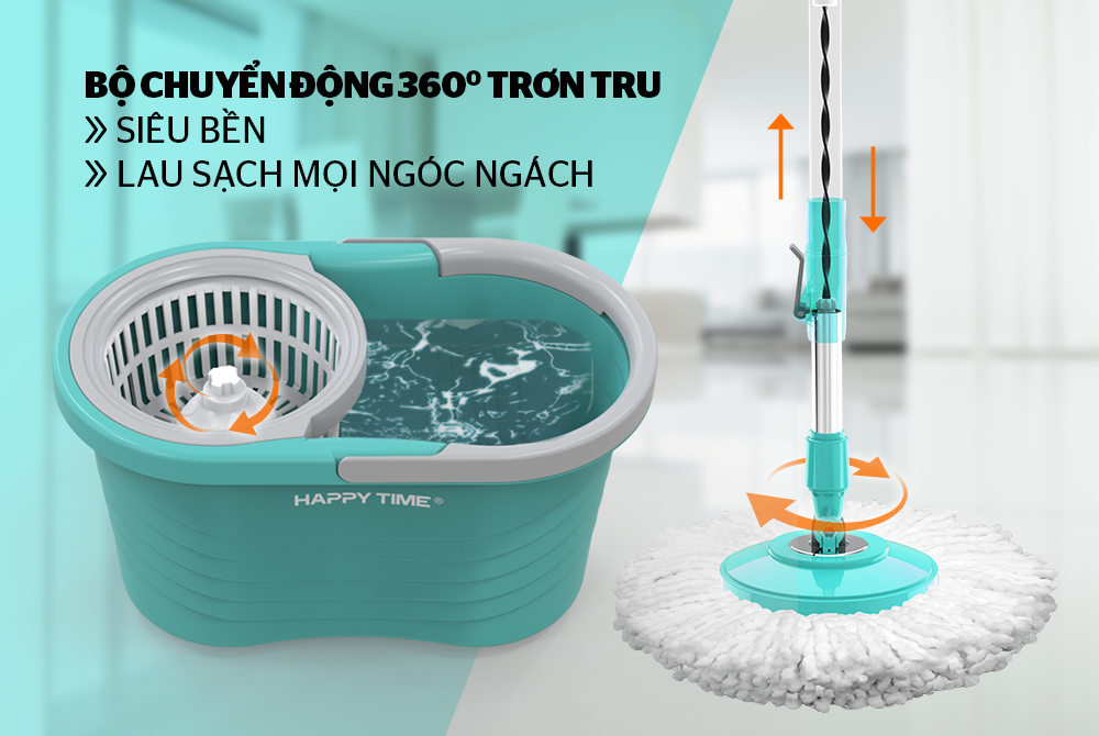 Bộ lau nhà xoay 360 độ Happy Time KH-CL330PB được thiết kế tiện dụng với thùng vắt làm bằng nhựa PP siêu bền. Dung tích thùng rộng rãi thoải mái giặt vắt bông lau không lo bị bắn nước ra bên ngoài, thiết kế tinh tế không chiếm nhiều diện tích.