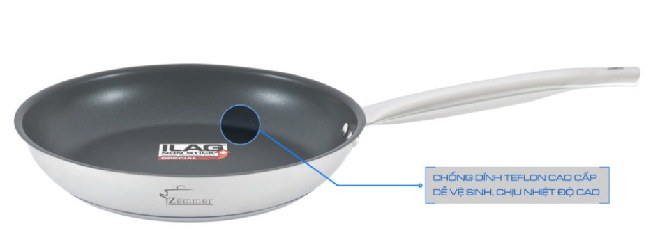Chảo được phủ lớp chống dính men Teflon cao cấp giúp việc chiên, rán các món ăn trở nên dễ dàng hơn bao giờ hết.