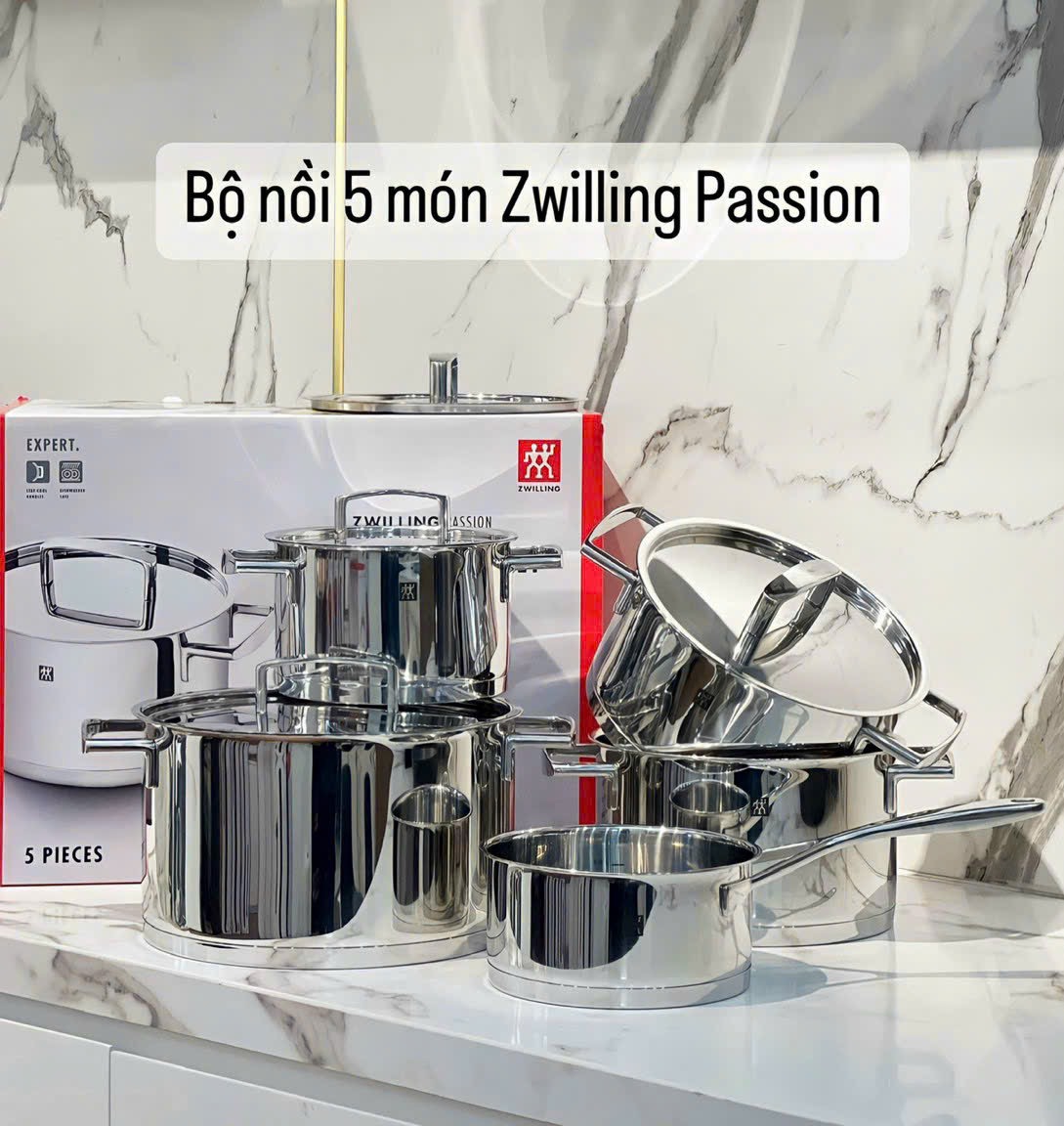 Bộ nồi Zwilling Passion 5 món với thiết kế cổ điển sang trọng, mang màu sắc nguyên bản, phù hợp với mọi không gian bếp.