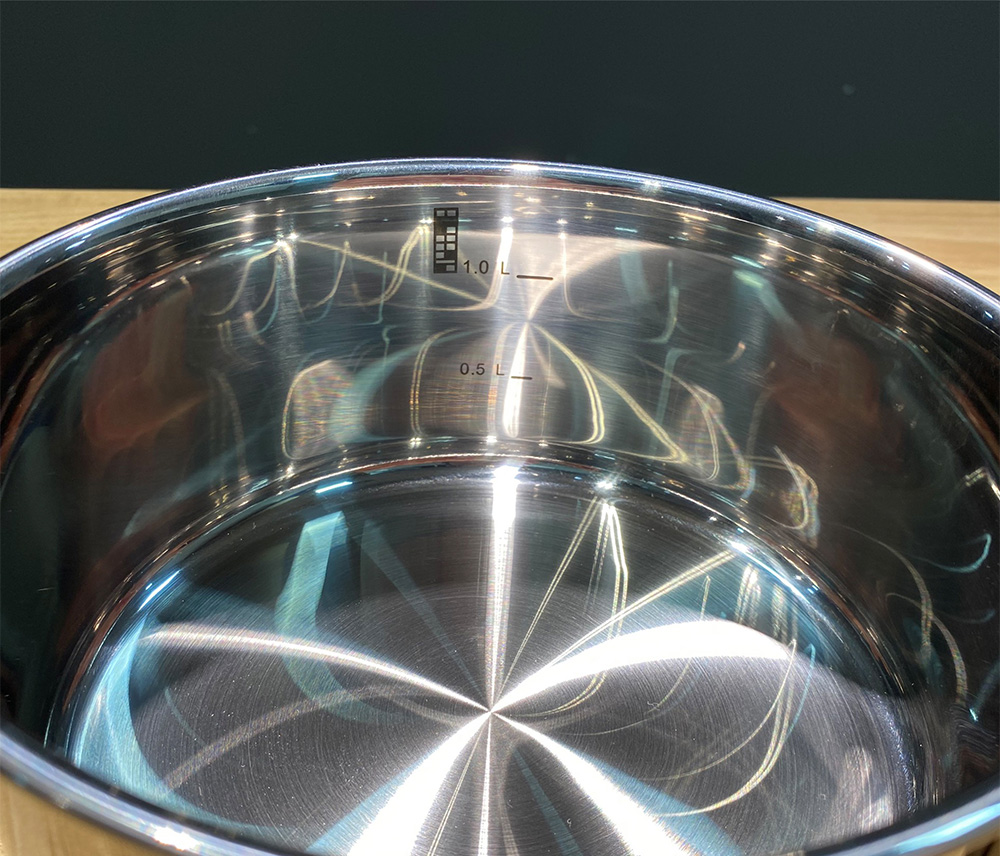 Bên trong lòng nồi có thêm thang đo dung tích giúp bạn dễ dàng quan sát và biết được dung tích đang có bên trong nồi, điều này giúp việc định lượng khi nấu ăn được chính xác hơn.