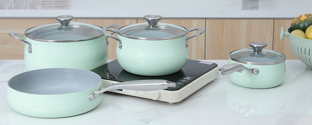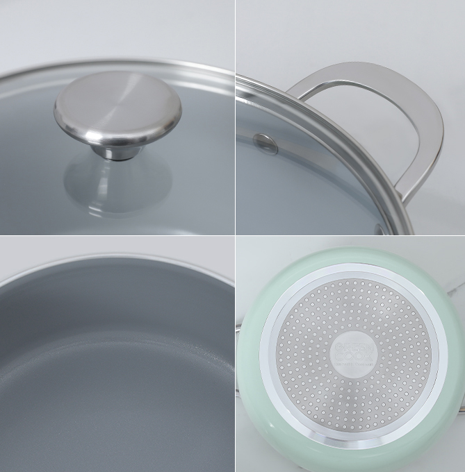 Các sản phẩm trong bộ GCS242-T1 có phần thân được đúc bằng hợp kim nhôm, có khả năng lan tỏa nhiệt nhanh và đều, tiết kiệm năng lượng và giúp thực phẩm chín đều và giữ nguyên được hương vị của món ăn.