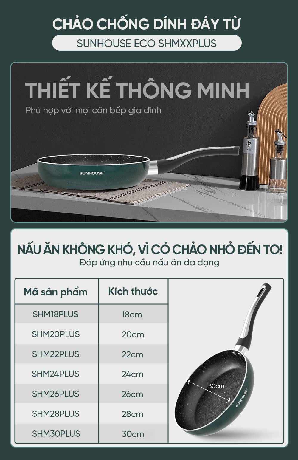 Chảo chống dính Sunhouse Eco SHM18 Plus là lựa chọn lý tưởng cho những ai yêu thích nấu nướng. Với sản phẩm này, bạn có thể dễ dàng chế biến các món ăn ngon miệng cho gia đình mà không lo lắng về việc thực phẩm bị dính hay khó vệ sinh. Đây cũng là một món quà tuyệt vời cho những người đam mê ẩm thực hoặc mới bắt đầu học nấu ăn.