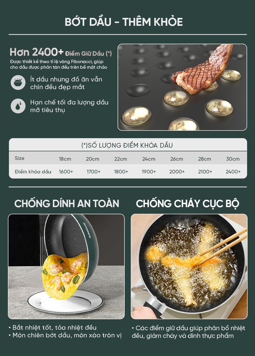 | Lòng chảo | Sơn chống dính đen, 1900+ điểm khóa dầu |
