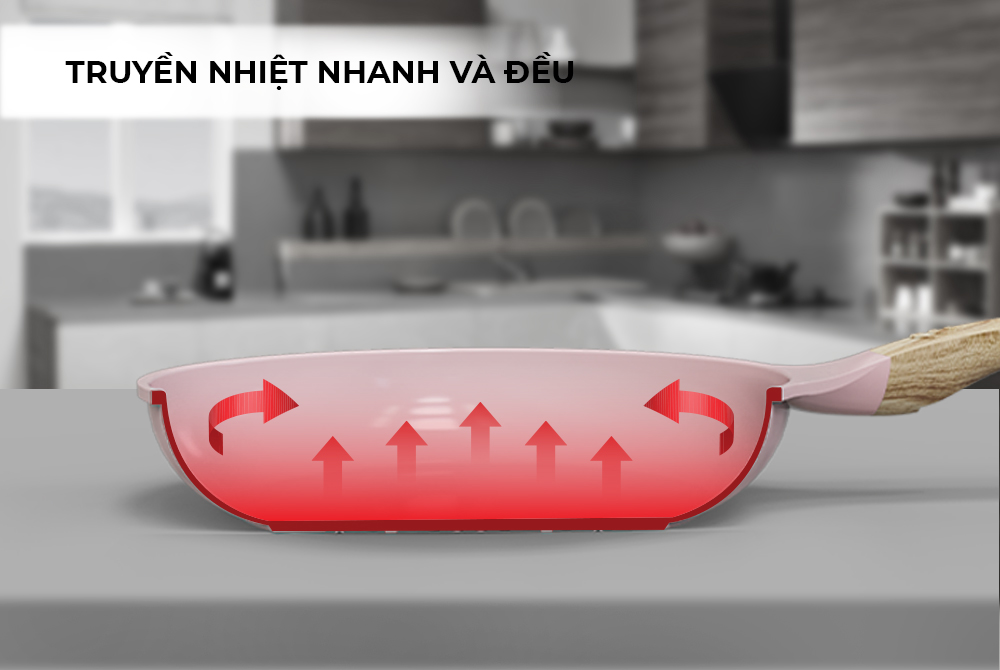 Chảo được đúc nguyên khối nên thành chảo và đáy dày dặn, truyền nhiệt nhanh giữ trọn hương vị thực phẩm trong khi chế biến