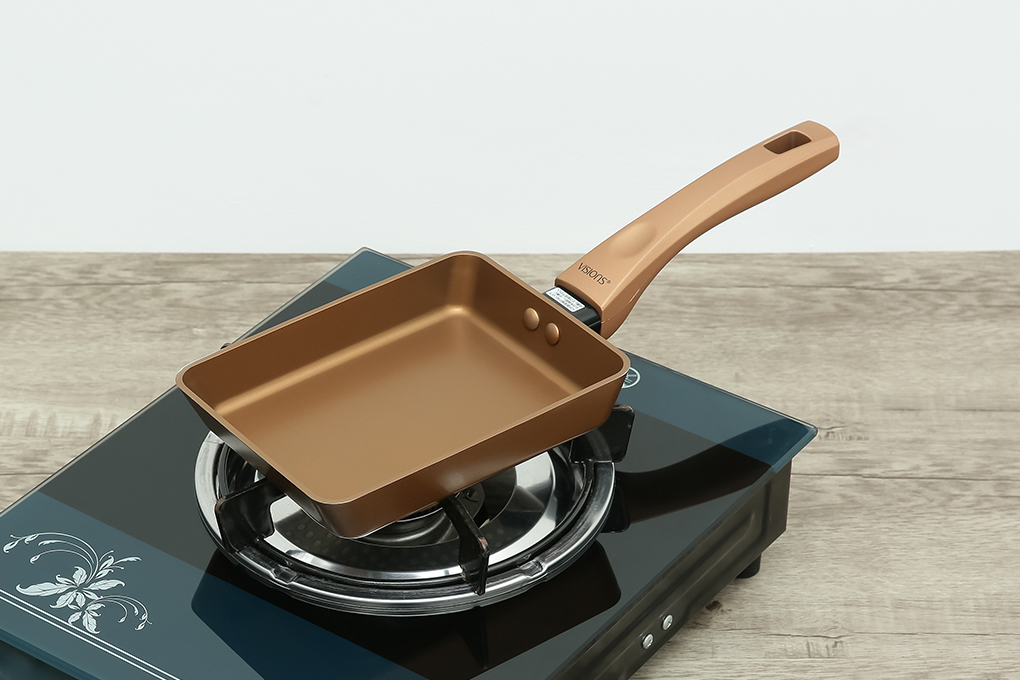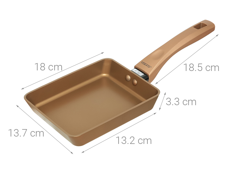 Chảo chiên vuông 18cm Visions VS-EP18-AB/JP nổi bật với tông màu vàng đồng rực rỡ, tạo điểm nhấn cho căn bếp thêm sang trọng. Thiết kế chảo hình vuông tiện lợi làm món bò bít tết (beefsteak), trứng cuộn,...
