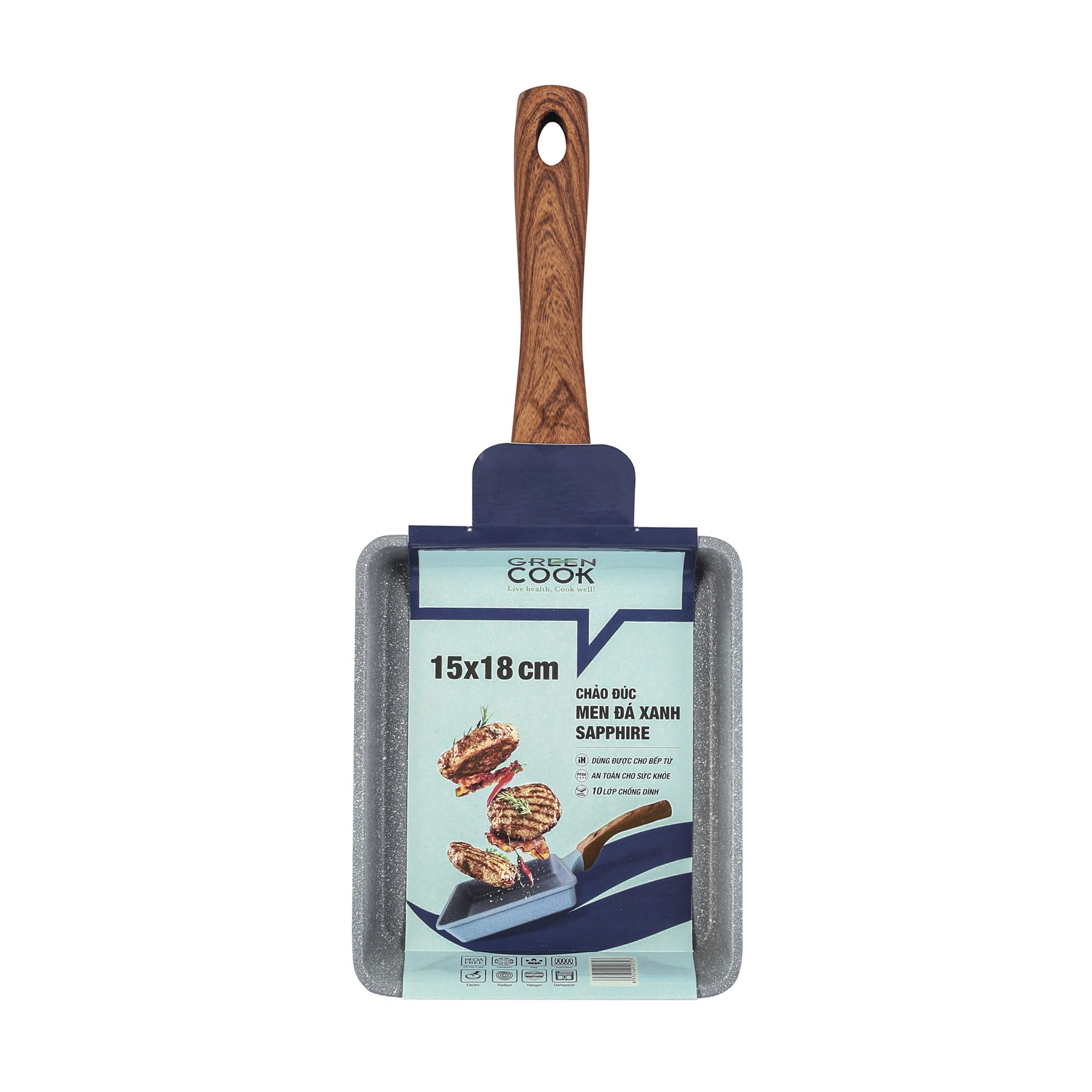 Chảo chữ nhật đúc men đá xanh Sapphire Green Cook GCP09-1518IH được sản xuất theo công nghệ đúc tân tiến của Hàn Quốc với lớp phủ chống dính Daikin (Nhật Bản) không PFOA, an toàn khi sử dụng.