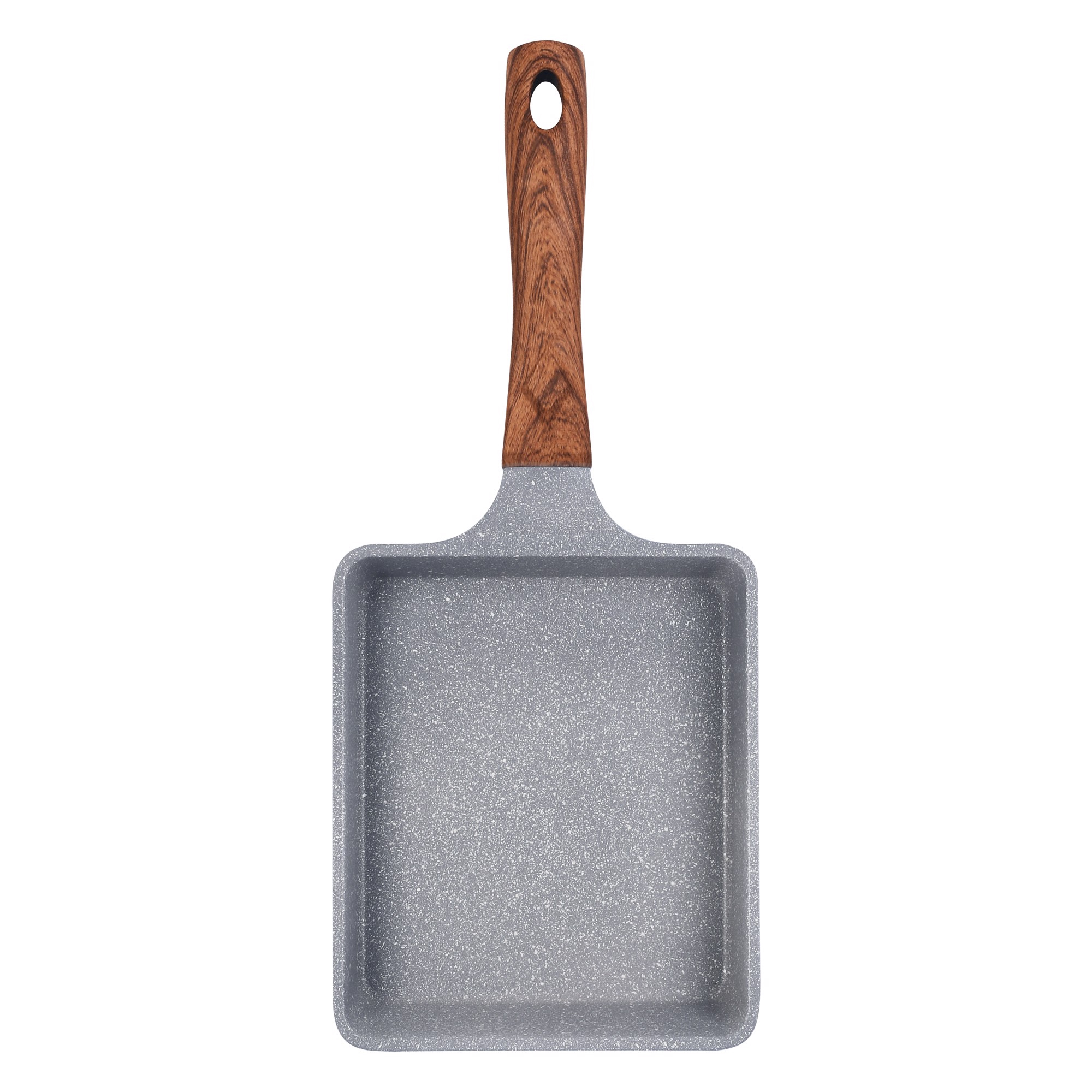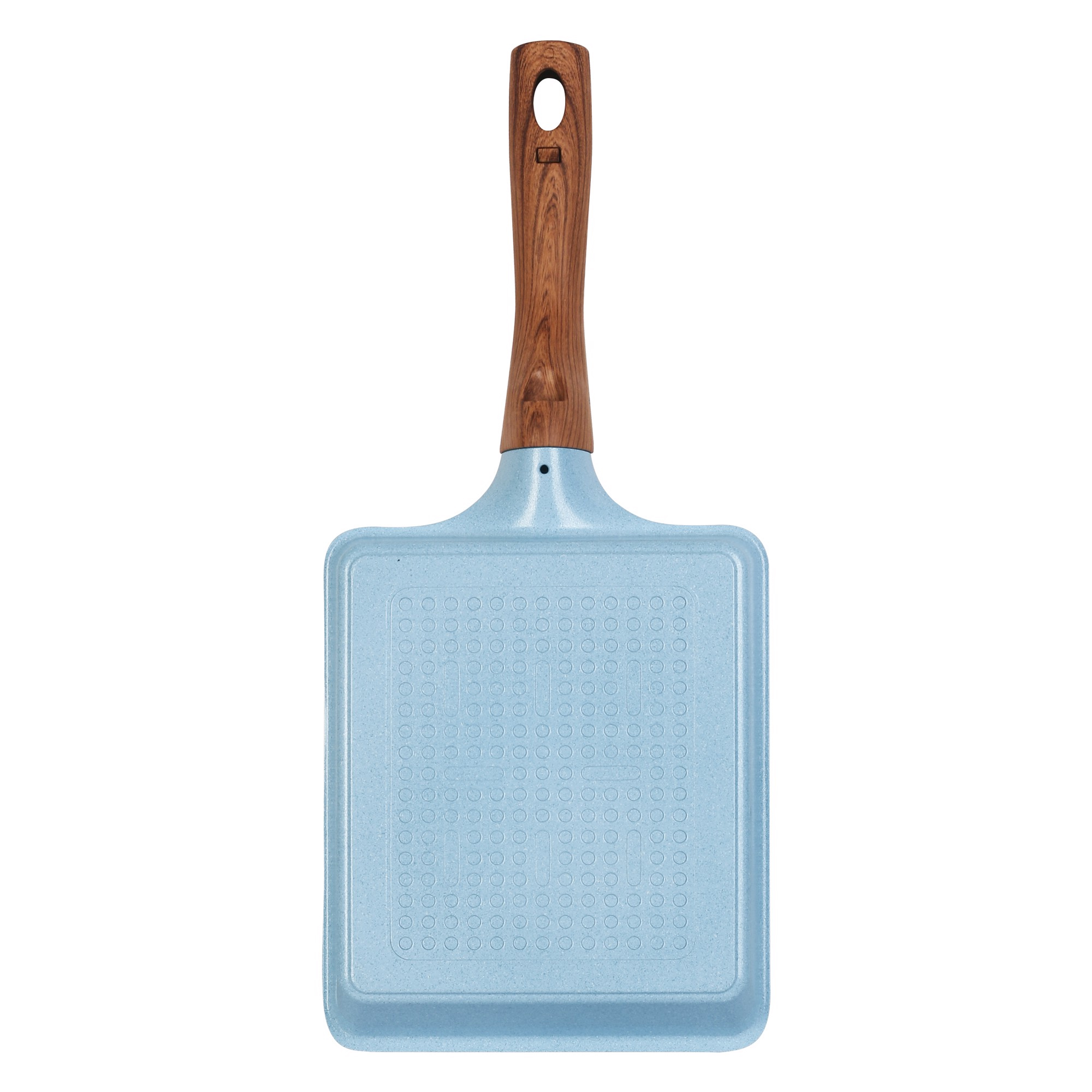 Chảo có dạng hình chữ nhật, kích thước 15x18cm. Với thiết kế hình chữ nhật có thể chiên xào nhiều món ăn, đặc biệt tiện lợi cho những món như bít-tết, trứng cuộn,...