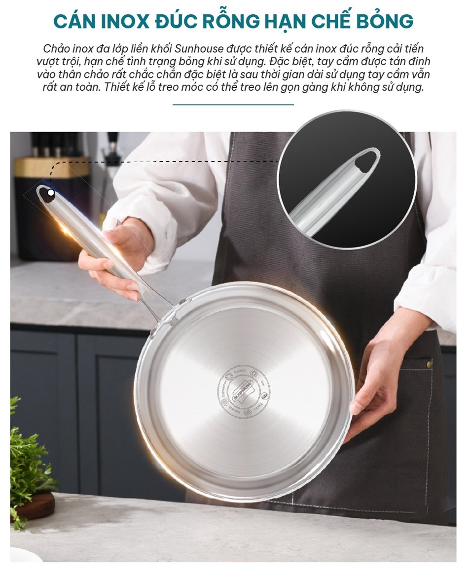 Thông số kỹ thuật Chảo inox Sunhouse IN20M6E