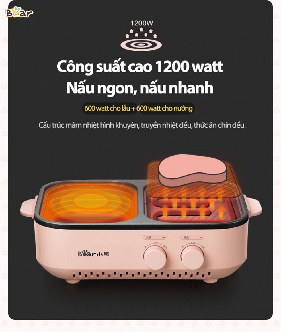 | Công suất | 1200W (lẩu 600W - nướng 600W) |