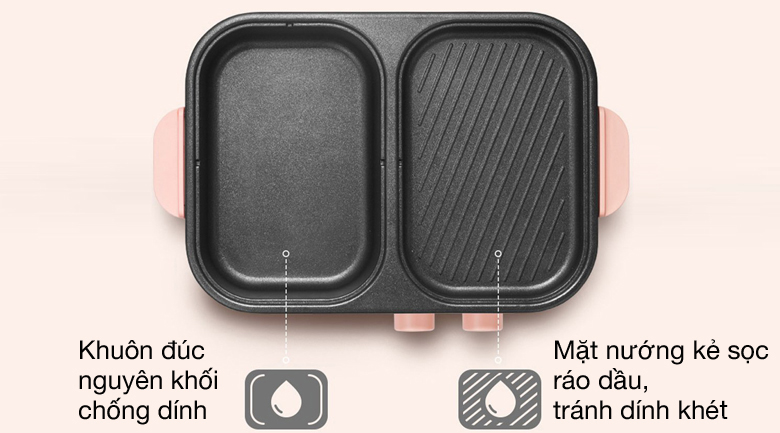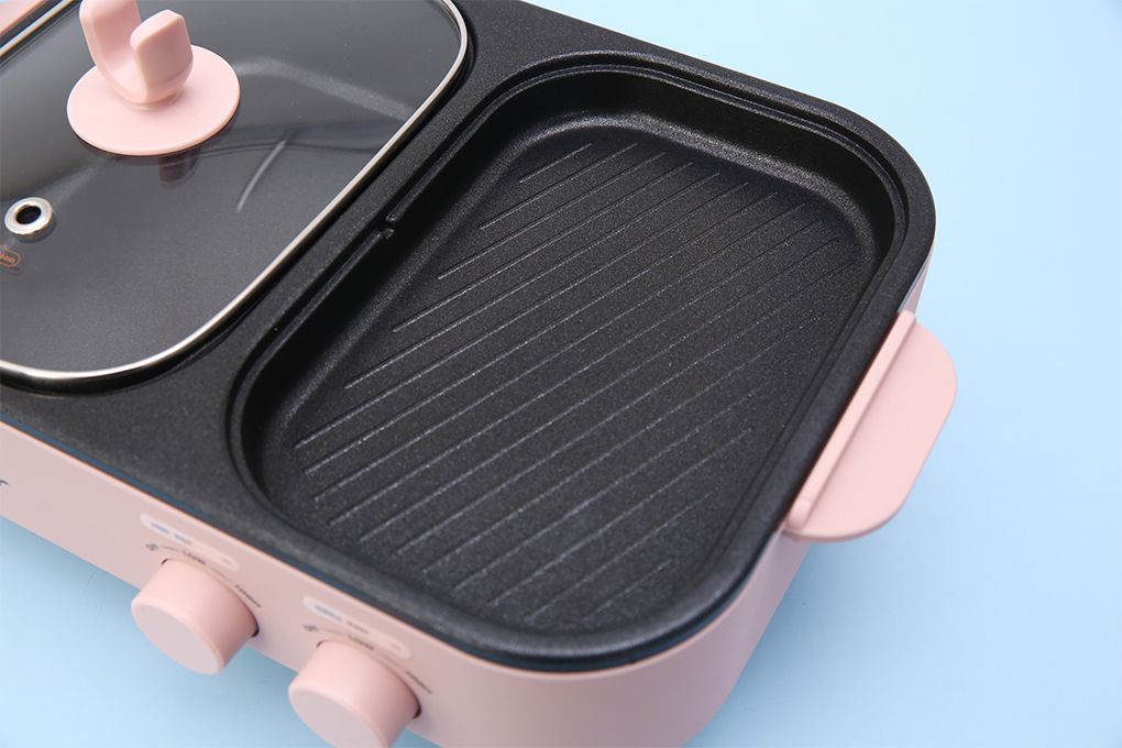 Thiết kế ấn tưởng gồm 2 ngăn lẩu và nướng riêng biệt giúp cho cả gia đình có thể cùng lúc thưởng thức nồi lẩu thơm ngon cùng món thịt nướng thơm lừng.