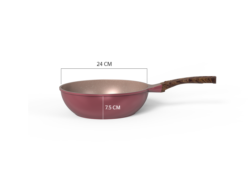 Thành chảo được sơn tỉnh điện màu hồng đẹp mắt theo kịp trendy, lòng chảo DP24MP chống dính vân đá 3 lớp, đem đến độ bền bỉ cao, giúp bạn thoải mái chiên xào các món ngon cho bữa cơm gia đình.