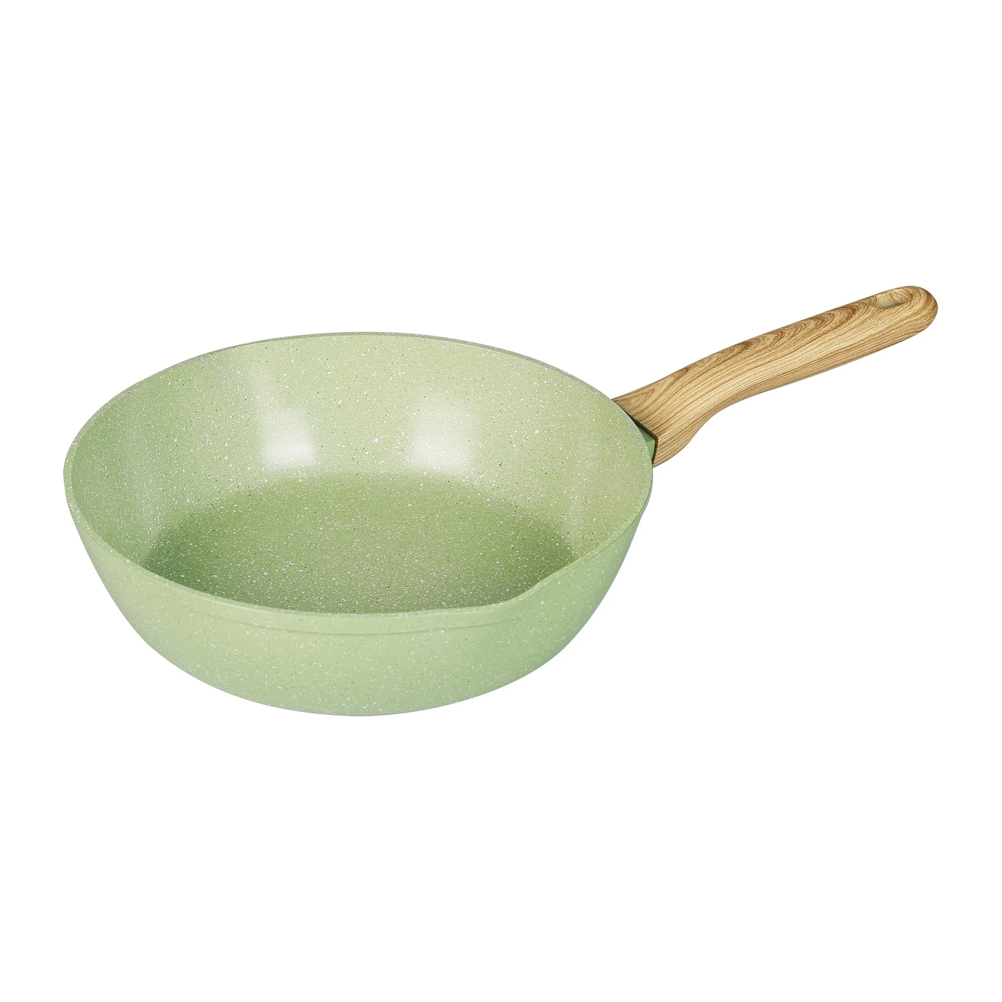 Chảo được làm từ chất liệu hợp kim nhôm quốc tế 3003, chất liệu này giúp truyền nhiệt nhanh và tỏa nhiệt đều, tối ưu thời gian chế biến thức ăn.