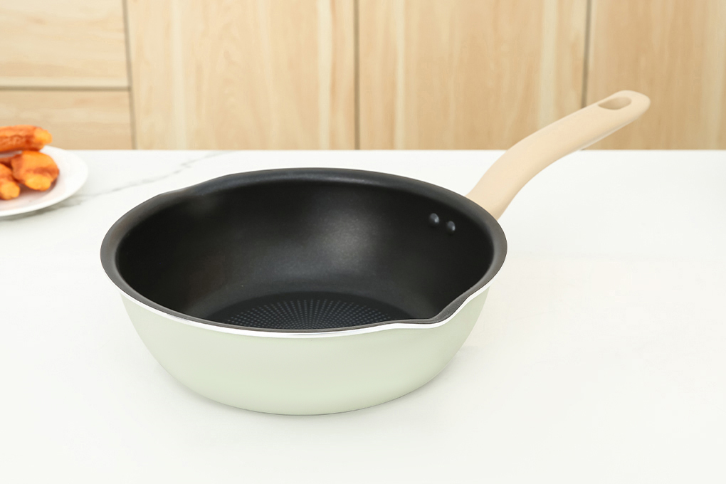 Đặc biệt với thiết kế có miệng rót ở 2 bên chảo giúp cho việc đổ các món xào, món nhiều nước ra tô dĩa dễ dàng hơn.
