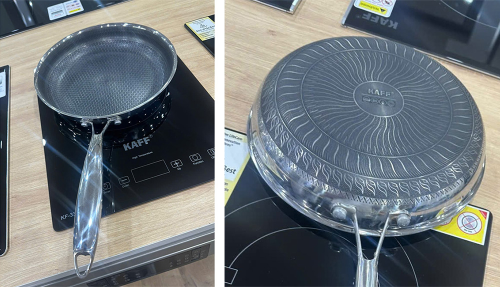 Chảo Kaff KF-245IOHC với đường kính 24cm, thỏa sức chiên xào thức ăn cho gia đình, đáy dạng đáy từ nên dùng được hầu như tất cả các loại bếp như bếp hồng ngoại, bếp điện từ, bếp gas,...