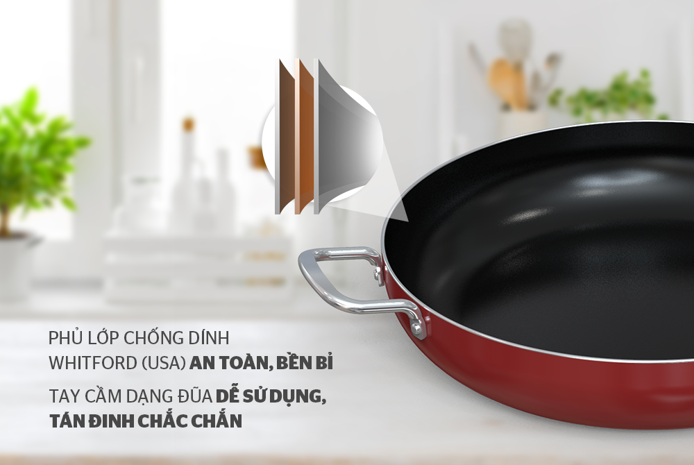Lòng chảo trơn nhẵn, được phủ lớp chống dính Whitford (USA) ít bám dầu, có độ bền cao, không dễ bong tróc.