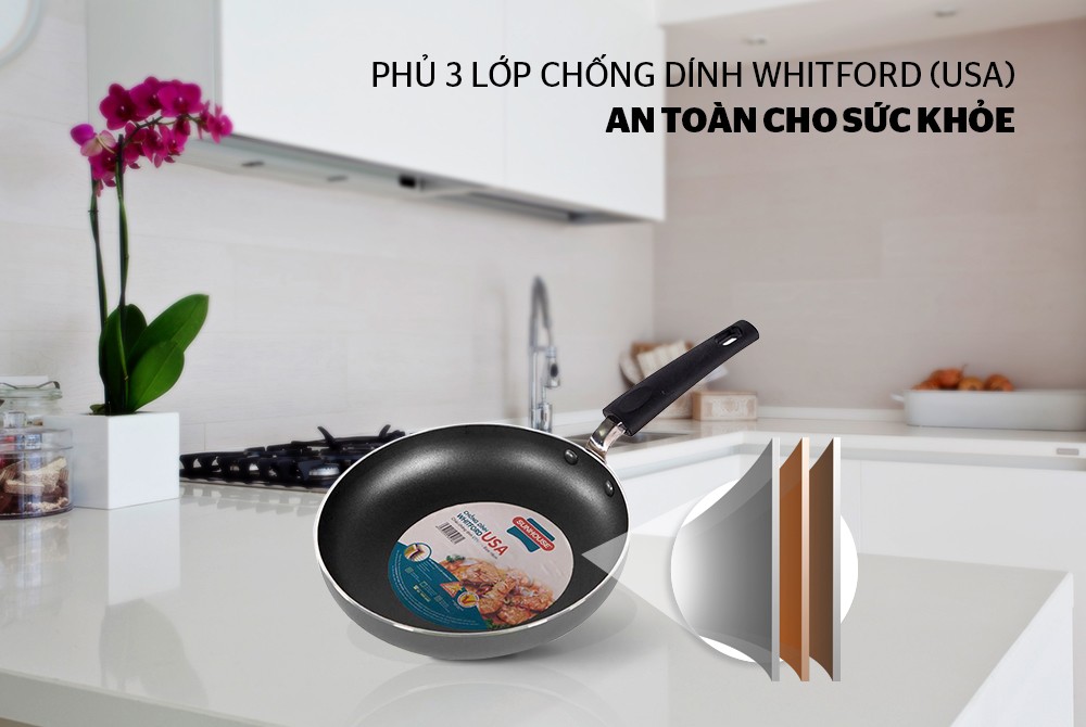 Dòng chảo trơn Sunhouse với công nghệ chống dính Whitford (Hoa Kỳ) - Thương hiệu chống dính hàng đầu thế giới tuyệt đối không có tình trạng thôi nhiễm vào thức ăn, an toàn cho sức khỏe. Bề mặt chống dính siêu bền, tuổi thọ dài, dễ dàng vệ sinh và tẩy rửa. Chảo còn giúp giữ được hương vị tươi ngon của thức ăn trong thời gian tương đối.