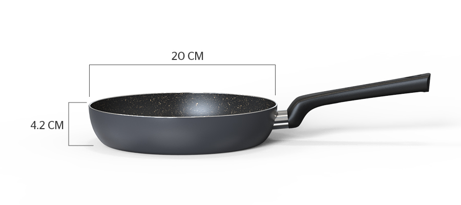 Chảo vân đá Sunhouse CT20 Plus có đường kính 20cm, độ dày thành chảo 2.1mm. Chảo được làm từ nhôm tấm cao cấp nguyên chất, khả năng bắt nhiệt và truyền nhiệt nhanh, cùng lớp chống dính cao cấp sẽ giúp chế biến được nhiều món chiên xào một cách dễ dàng.