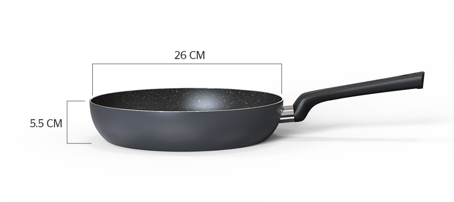 Chảo vân đá Sunhouse CT26 Plus có đường kính 26cm, độ dày thành chảo 2.1mm. Chảo được làm từ nhôm tấm cao cấp nguyên chất, khả năng bắt nhiệt và truyền nhiệt nhanh, cùng lớp chống dính cao cấp sẽ giúp chế biến được nhiều món chiên xào một cách dễ dàng.