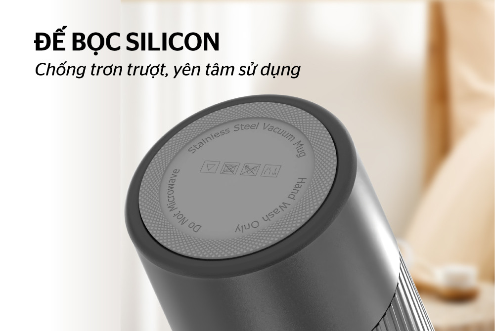 Bên dưới đế cốc có bọc silicone giúp hạn chế trơn trượt, giúp cốc giữ cố định tốt trên bề mặt đặt để.