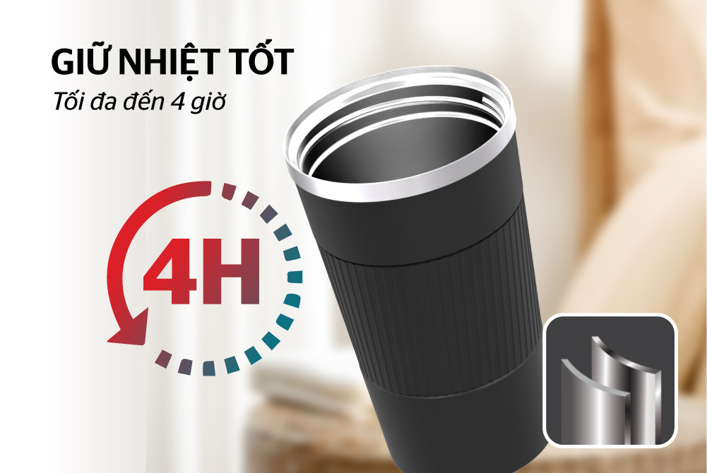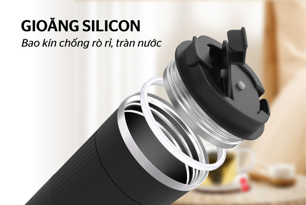 Gioăng cốc giữ nhiệt được làm từ silicone, chịu nhiệt và đàn hồi tốt, giúp cho bình đóng kín hơi, không lo tràn nước ra bên ngoài.
