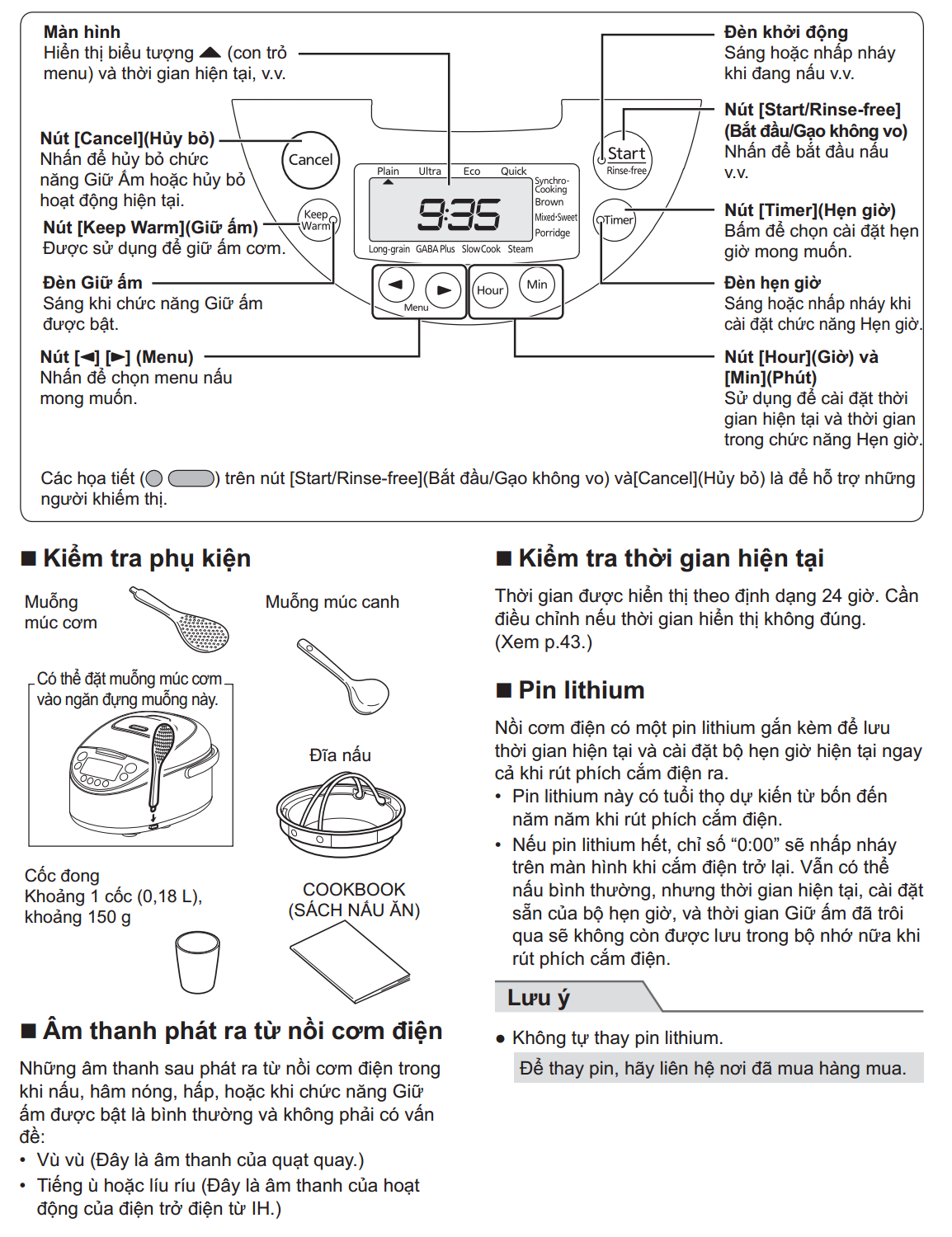 HƯỚNG DẪN SỬ DỤNG NHANH NỒI CƠM ĐIỆN TỬ CAO TẦN TIGER