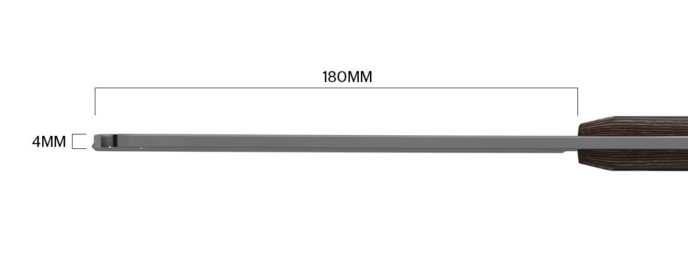 Chiều dài lưỡi dao chặt khoảng 18 cm đạt độ cân bằng tốt, phần cấu tạo lưỡi dày 4mm được mài thích hợp để cắt thái nhiều nguyên liệu khác nhau.