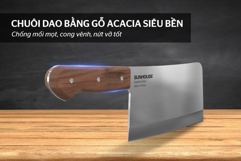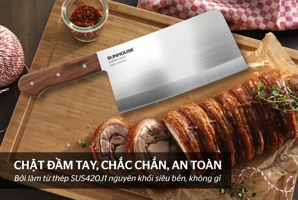 Để thỏa sức trổ tài chế biến các món ngon, bạn không thể bỏ qua sản phẩm dao chặt Sunhouse KS-KN200CS với thiết kế chắc chắn, chất liệu bền bỉ. Chiếc dao này sẽ giúp bạn chế biến những món ăn ngon cho cả gia đình.