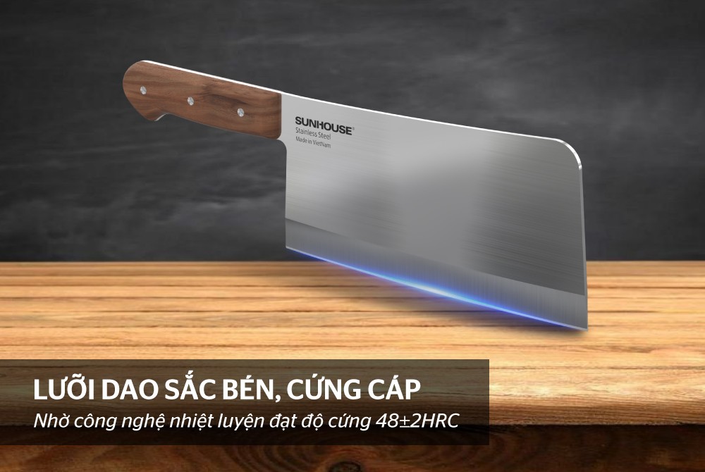 Dao chặt xương Sunhouse KS-KN200CS được thiết kế chắc chắn, lưỡi dao thép SUS420J1 nguyên khối sáng bóng và bền bỉ.