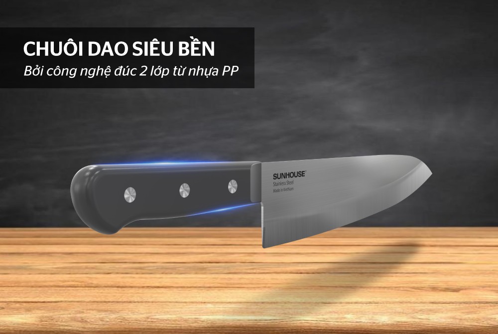 Chuôi dao nhựa PP đúc 2 lớp vô cùng chắc chắn, vừa tạo cảm giác thoải mái khi cầm vừa làm tăng độ thẩm mỹ cho gian bếp. Đặc biệt còn chống mối mọt, cong vênh, nứt vỡ tốt, mang đến sự an toàn trong quá trình sử dụng.