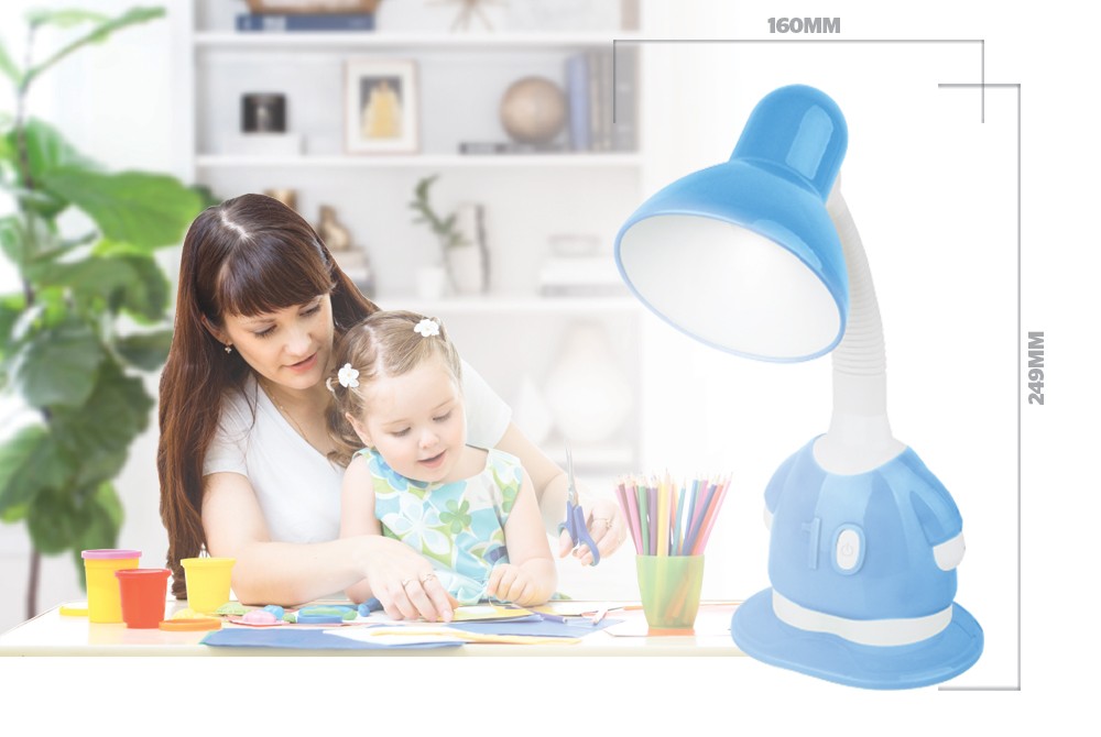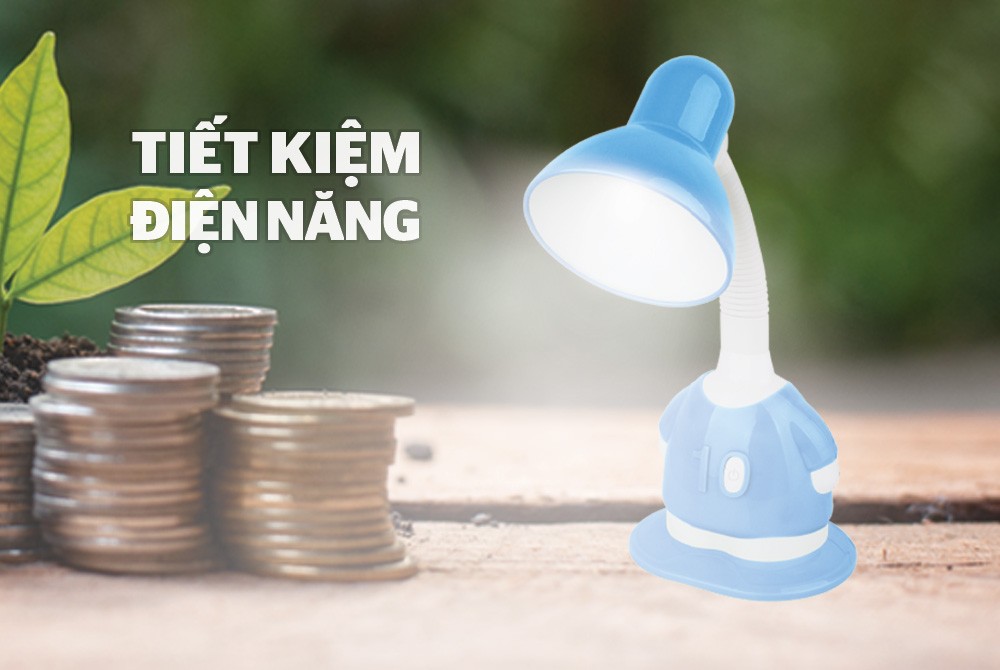 Đèn sử dụng bóng LED 6W tiết kiệm điện, cho ánh sáng đều, chiếu thẳng vào bàn cũng như không nhấp nháy khó chịu và bảo vệ mắt trẻ.