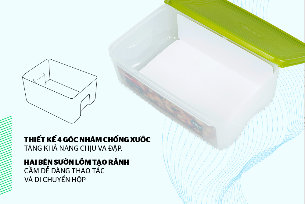 Hộp nhựa Biozone được thiết kế thông minh với 4 góc nhám chống xước, kết hợp vùng lõm hai bên sườn tạo rãnh cầm, dễ dàng thao tác.