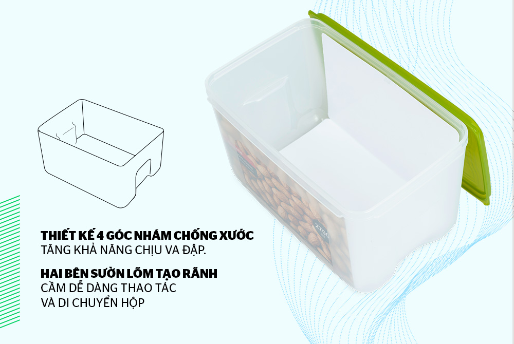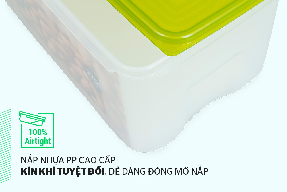 Nắp hộp kín khí tuyệt đối và đóng mở dễ dàng