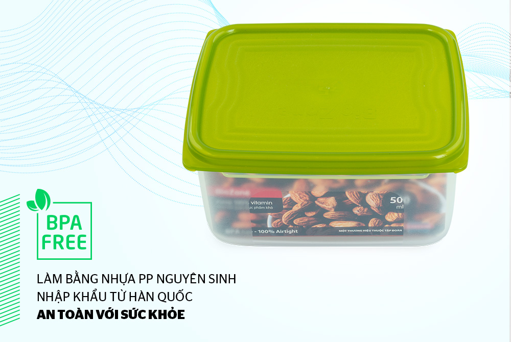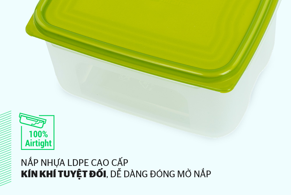 Hộp kín khí nên ngăn hơi nước xâm nhập vào thực phẩm, giúp ngăn ẩm mốc và giữ cho thực phẩm tươi ngon bảo toàn dưỡng chất tối đa.