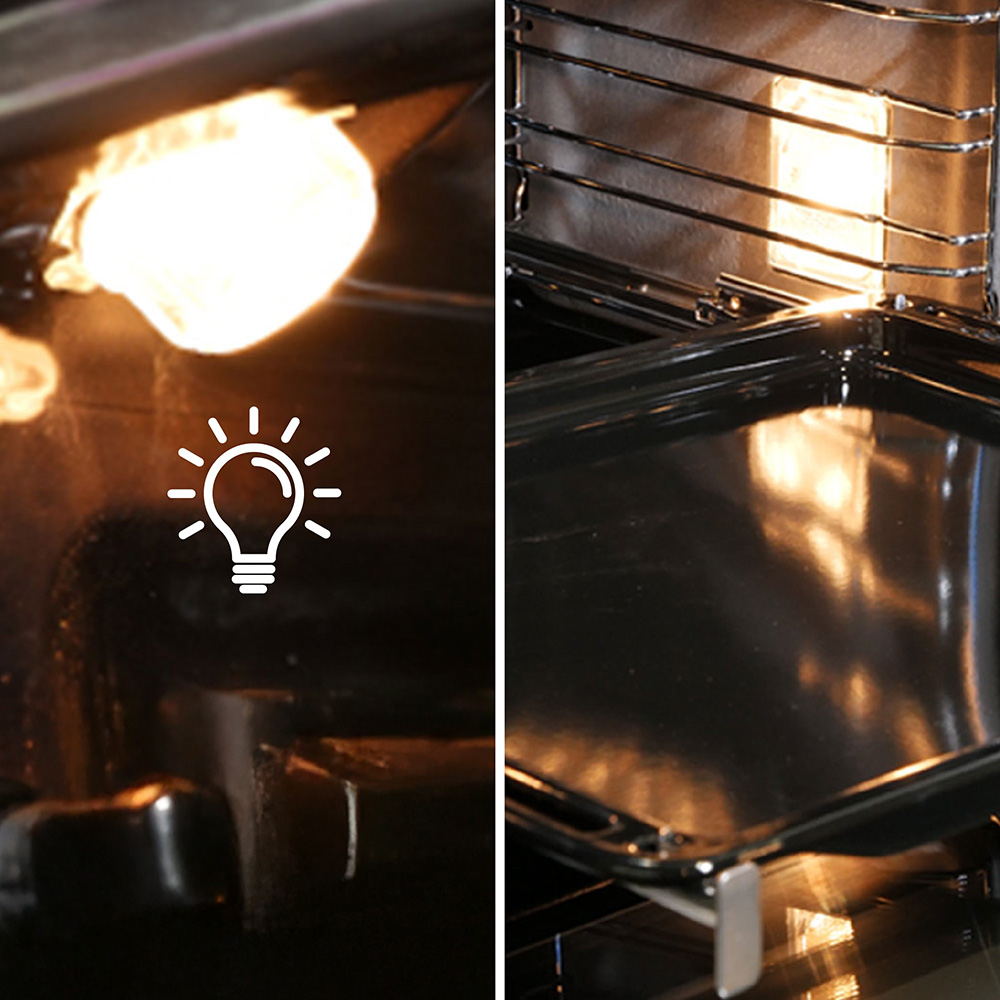 Hệ thống chiếu sáng kép kết hợp với cửa kính trong suốt giúp bạn theo dõi quá trình chế biến rõ hơn, dễ dàng hơn.