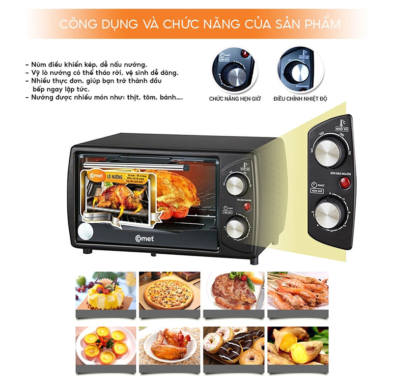Hỗ trợ tối đa trong việc chế biến món ăn từ chiếc lò nướng Comet CM6510 là những phụ kiện tiện lợi như khay nướng, vỉ nướng.
