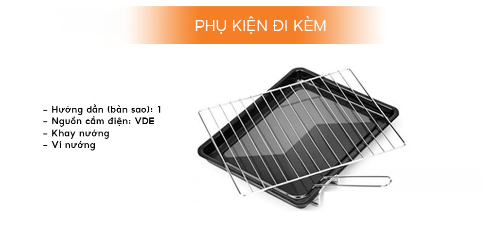 | Phụ kiện đi kèm | Khay nướng và vỉ nướng |