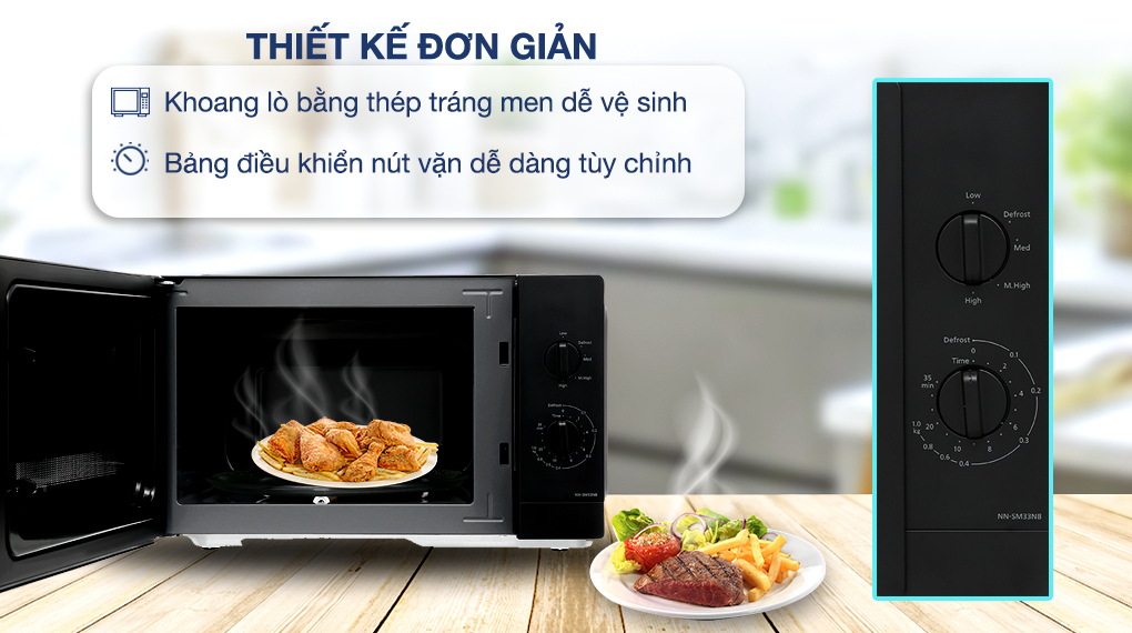 Lò vi sóng Panasonic NN-SM33NBYUE với dung tích 25 lít và công suất 900W được chia làm 5 mức giúp hỗ trợ "đầu bếp gia đình" các nhiệm vụ như hâm nóng, rã đông, nấu,...