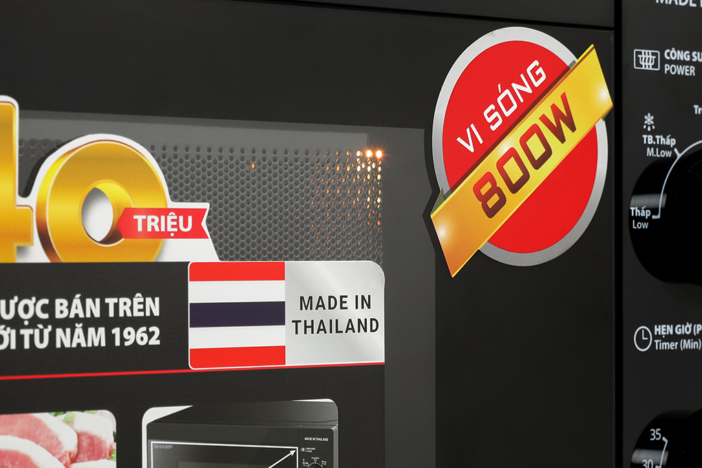 Dung tích khoang lò 21 lít cùng công suất 800W thoải mái hâm nóng, rã đông, nấu mọi loại thức ăn.