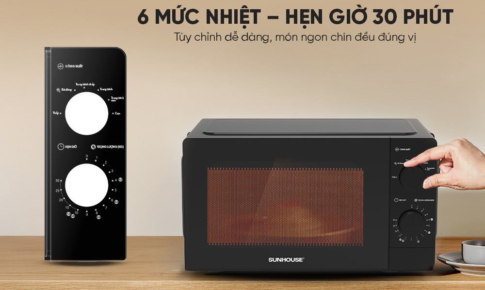 Lò vi sóng Sunhouse SHD4821 (ra mắt năm 2025) sở hữu sắc màu tối giản phù hợp với nhiều không gian bếp khác nhau. Thiết kế đơn giản, gọn gàng và dễ dàng sử dụng là một trong những điểm đáng chú ý của chiếc lò vi sóng (microwave) này.
