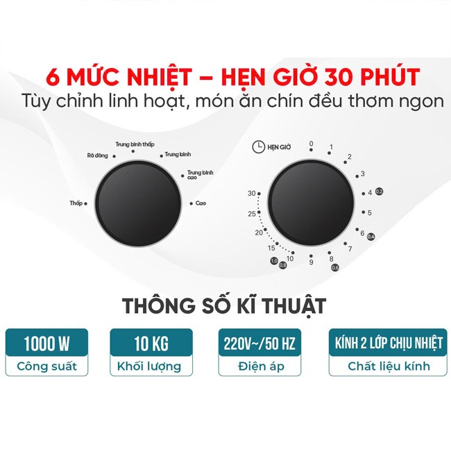 | Chất liệu cửa lò | Kính 2 lớp chịu nhiệt |