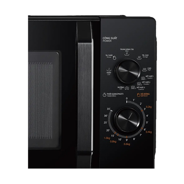 Lò vi sóng kết hợp chức năng nướng với dung tích 25 lít (công suất vi sóng 800W, công suất nướng 1000W) thoải mái hâm nóng, rã đông, nấu, nướng mọi loại thức ăn với dải nhiệt độ rộng 9 mức.