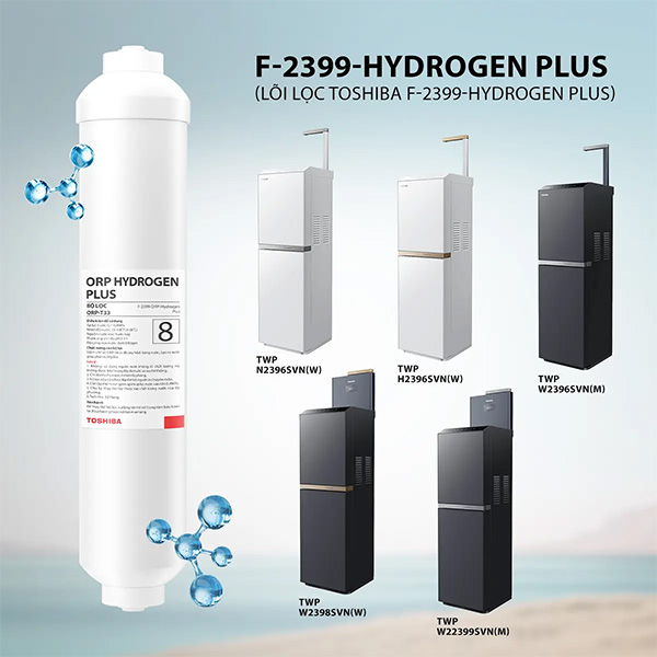 Lõi lọc Toshiba F-2399-ORP-Hydrogen Plus hoạt động dựa trên công nghệ điện phân tiên tiến. Quá trình này giúp giảm đáng kể chỉ số ORP (mức độ oxy hóa) của nước, tạo ra nước giàu hydro. Tăng khả năng chống oxy hóa mạnh mẽ, làm chậm quá trình lão hóa tế bào, tăng cường hệ miễn dịch cho cơ thể. Ngoài ra, nước hydro còn hỗ trợ tiêu hóa, trung hòa các gốc tự do và ngăn ngừa bệnh mãn tính.
