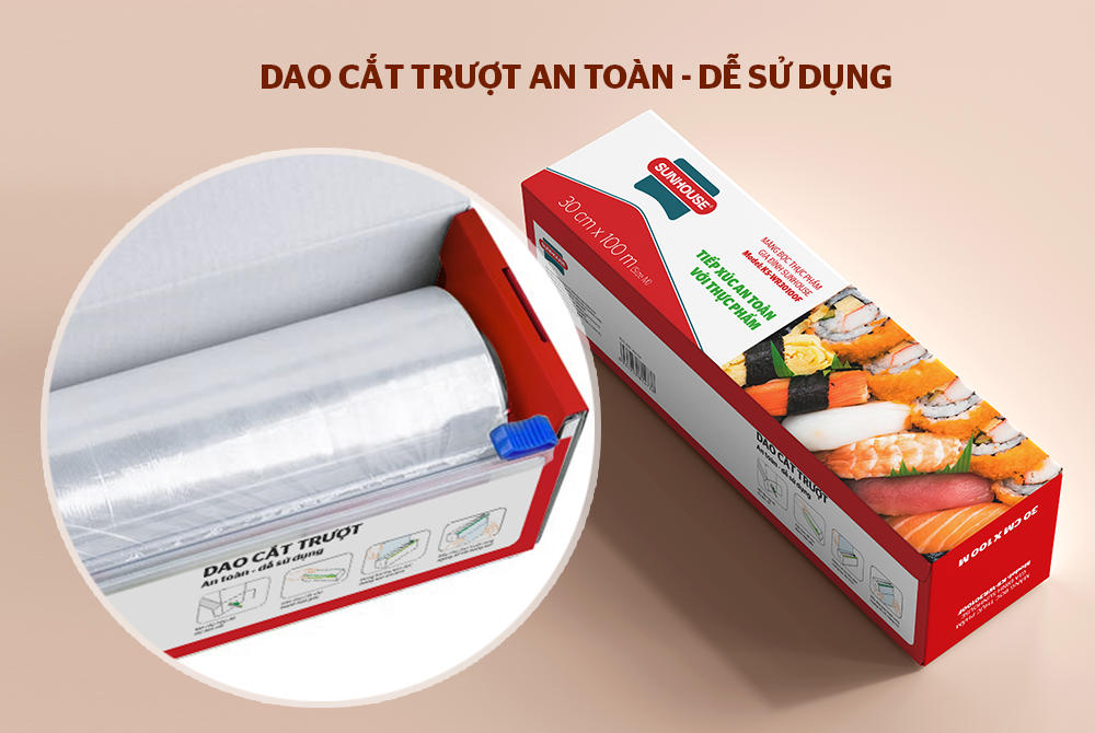 Sản phẩm có độ đàn hồi tốt, dễ kéo dài và đóng, bọc được vào bất kỳ hình dạng nào của hộp đựng thức ăn hay thực phẩm, ly, đĩa hoặc đồ gốm, sành, sứ, thủy tinh… Ngoài ra Màng bọc thực phẩm gia đình Sunhouse KS-WR30100F có dao cắt trượt an toàn, giúp dễ dàng sử dụng